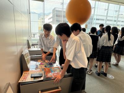 1年生は、2年生の作成したすごろくの説明を受け体験することで、学習内容を共有し地元那珂湊地域の企業や産業について理解を深めることができました。