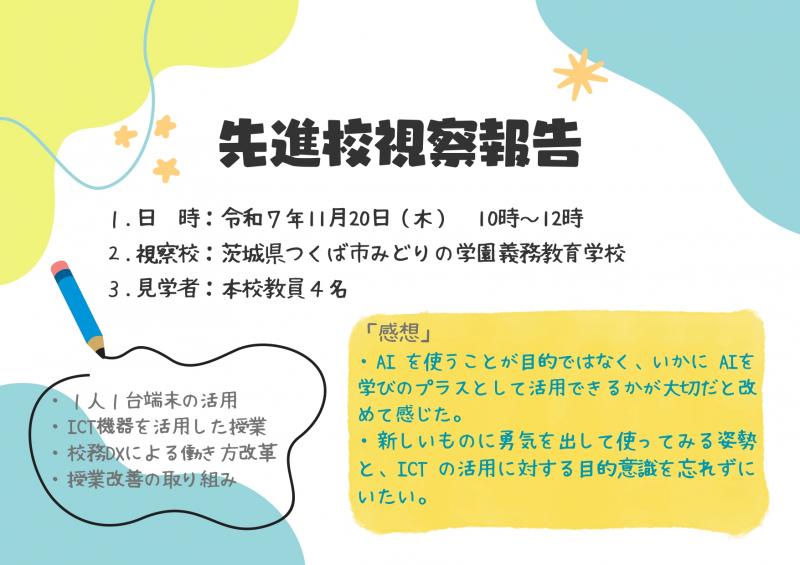 本校教員4名が、つくば市みどりの学園義務教育学校に視察に行きました。