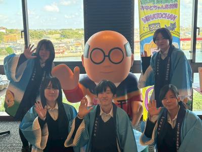 創業者・油屋熊八の像を地元の高校生がその地域らしいカラーに
