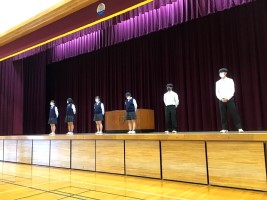 続いて校長先生と生徒会長(3-A 木村 円香)から激励の言葉をいただいて,国体や関東大会に向けて生徒たちも気を引き締めたようです。