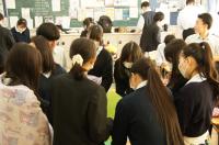 3年生(会計ビジネス科、起業ビジネス科、情報ビジネス科は課題探究、普通科は地域課題探究)の一年間の活動の成果を1.2年生や教員だけでなく、コミュニティスクールの委員の方々に発表しました。午前中にポスターセッションを行い、午後にはアンケートにより評価が高かった15グループが、全校生徒に対して発表を行いました。