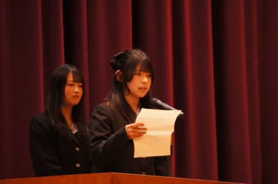 上級生からの歓迎に対する1年生代表生徒の挨拶は、この先の頼もしい未来を期待させるものでした。
